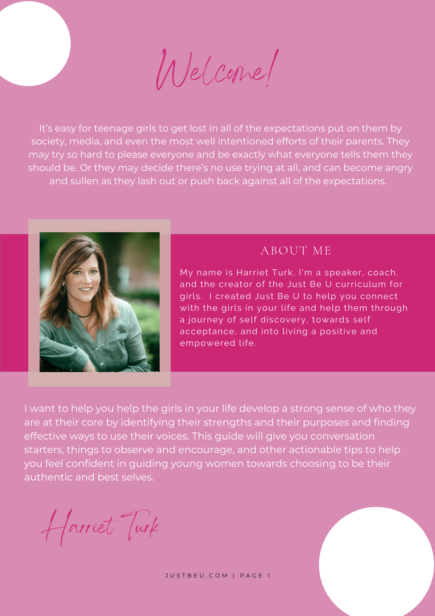 Shop Just Be U All Products Categories: Select a Category All Downloads Merchandise All Products All Downloads Merchandise Middle/High School Curriculum US$297.00 Elementary Curriculum US$297.00 JustBeU Bracelet from US$1.00 JustBeU Temporary Tattoo from US$0.50 You Are a Shining Star (For Younger Elementary-Aged Girls) US$1.99 Positive Vibes: A Creative Expression Book (For Tweens to Adults) US$2.99 Guide to Helping Girls Discover Their Strengths, Live with Purpose and Use their Voices Effectively Sale Price: US$29.99 Original Price: US$59.99 Sale